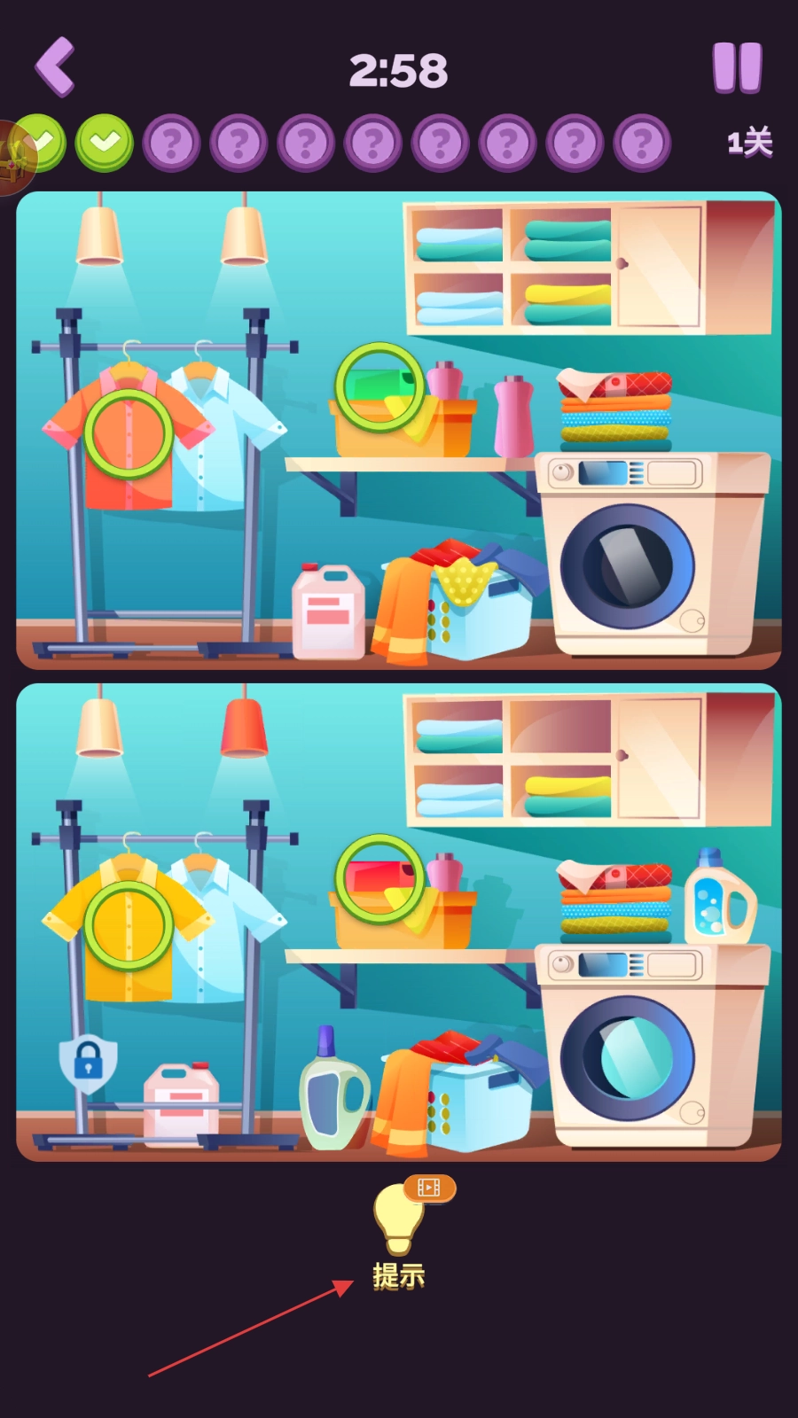 如果找不到不同差异处,可以点击【提示】获得线索。