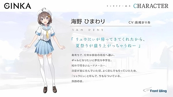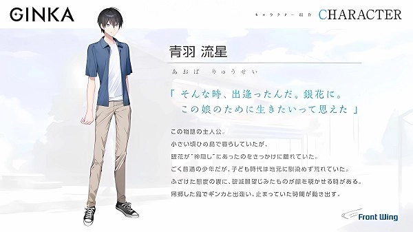 游戏的主角。小时候在姬之岛上住过一阵子,不过自从银花神隐后,他就搬离了那里。如今他只是个普通少年,但儿时因难以融入姬岛,行为有些叛逆,总爱搞恶作剧。看似玩世不恭的他,内心藏着自暴自弃的人生态度,偶尔会流露出来。当他再次回到姬之岛,遇到了Ginka,停滞的时间才重新开始流转。