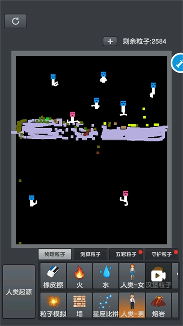 在这个平台上,点击相应入口即可启动游戏体验。页面下方陈列着丰富多样的粒子资源,可供用户进行模拟创作,涵盖物理特性、数据测算、面部五官等不同类型的粒子效果。