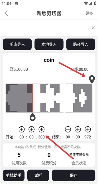 在页面导入音频后,拖动起点与终点标记,通过设置开始时间和结束时间等剪辑区间参数,精准截取自己需要的重要片段。