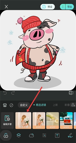 应用滤镜后,你可以拖动对应的调节滑块,调整滤镜的强度等参数,使图片呈现出更理想的效果,调整完毕后点击导出按钮即可。