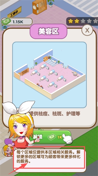 这款游戏里设置了十五种以上不同类别的美容服务项目,每个项目都有着特定的技能门槛,同时其利润空间也需要运营者进行平衡考量。