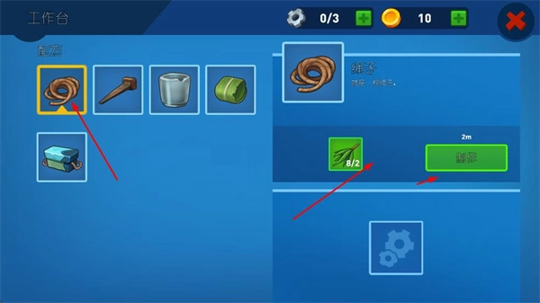 在工作台处制作各类物品,消耗对应的材料,以此增加生存工具的储备量。