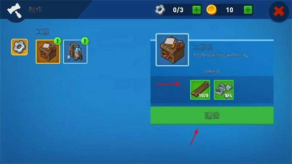 建造工坊、工作台这类设施,需要消耗木材、金属等资源,以此为制作物品与维持生存提供基础的建筑方面的支持。