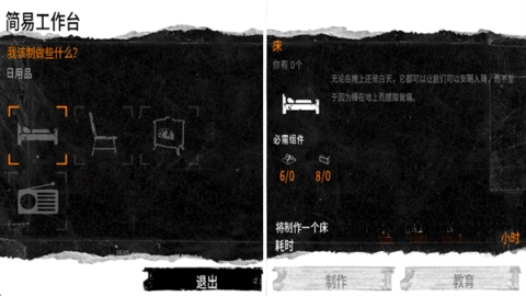 制作各类生存所需的物品,像武器、饮品、床铺以及火炉之类的东西。