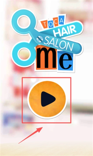 启动游戏后,首先看到的是充满温馨感的美发沙龙宣传图,点击红框内那个带有白色三角标识的橙色圆形播放按钮,或者按照下方红色箭头所指示的位置操作,就能开启美发体验之旅。