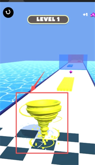 在龙卷风赛道里,得留意红色螺旋龙卷风的移动路径。要突破障碍,就得多次点击左上角那个带箭头的圆形图标,以此来调整自己的旋转方向。