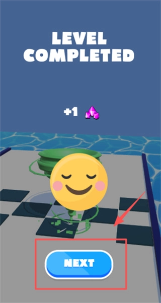 成功通关后会出现通关界面,你可以点击底部带有“NEXT”标识的蓝色箭头按钮,也可以按照画面中央黄色笑脸角色的提示进入下一轮挑战。