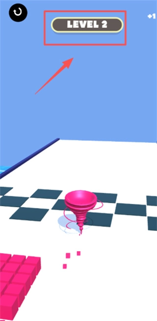 进入关卡选择界面后,点击上方棕色的“LEVEL 2”长条按钮,待观察到粉色漏斗周围环绕的环形线条特效,新一轮龙卷风竞速挑战便会开启。