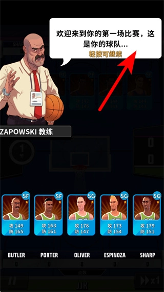 教练会为你介绍所在的球队,轻按屏幕即可继续操作,通过这一步你能了解球队成员的详细信息,以便为接下来的安排做好准备。