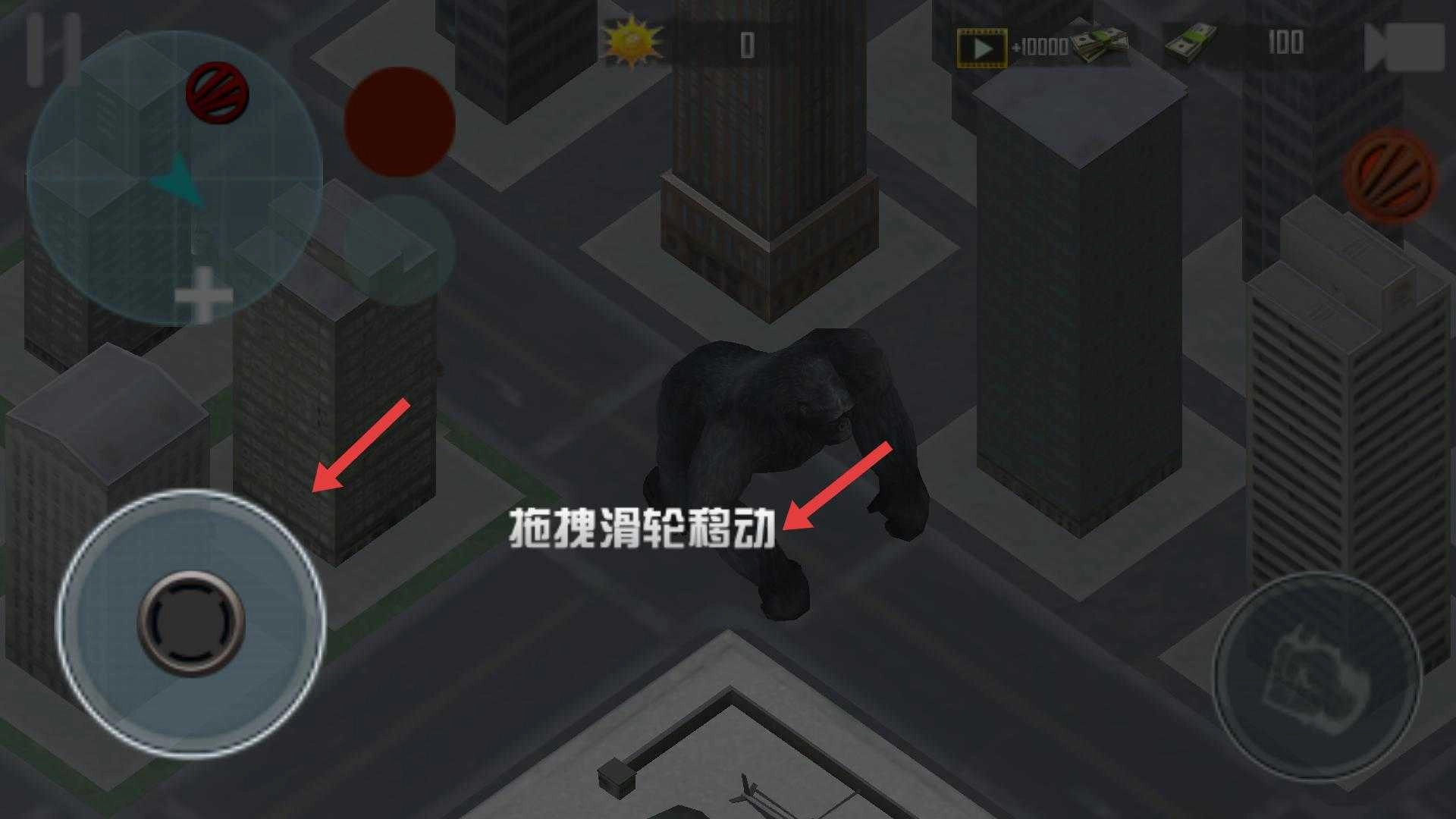 进入游戏后操控巨兽,借助拖拽滑轮的方式移动巨兽,让它在城市中穿梭,为即将展开的破坏行动做好准备。