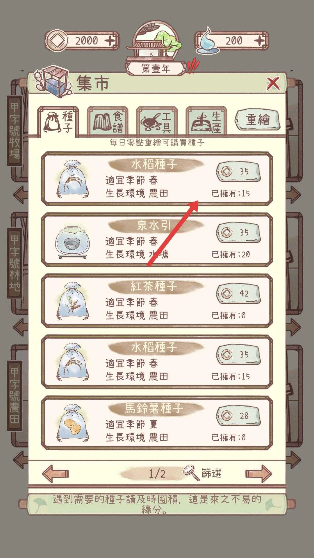 去集市进行种子的分类挑选,选购适合当下季节与生长环境的种子,像水稻种子这类,以此为后续的种植工作做好准备。