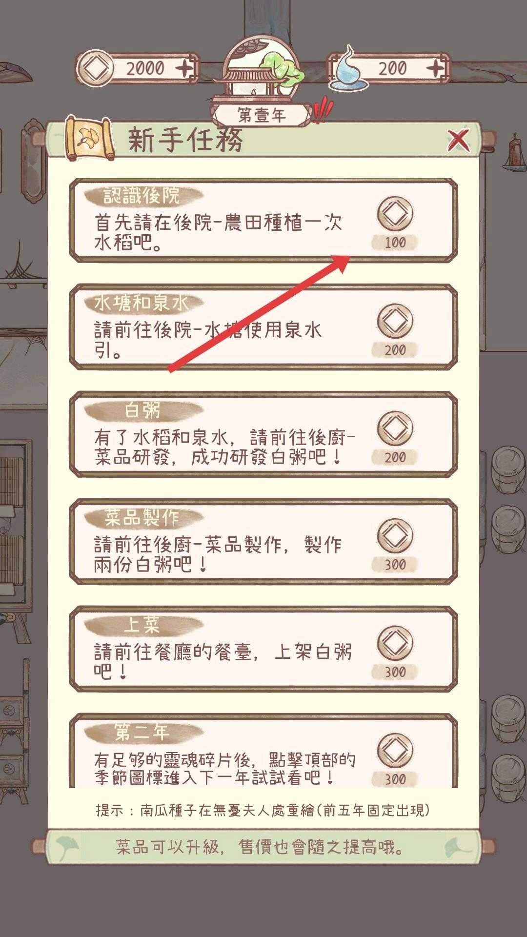 完成新手任务,按要求在不同区域开展种植、资源使用、菜品研发等操作,从而获取奖励。