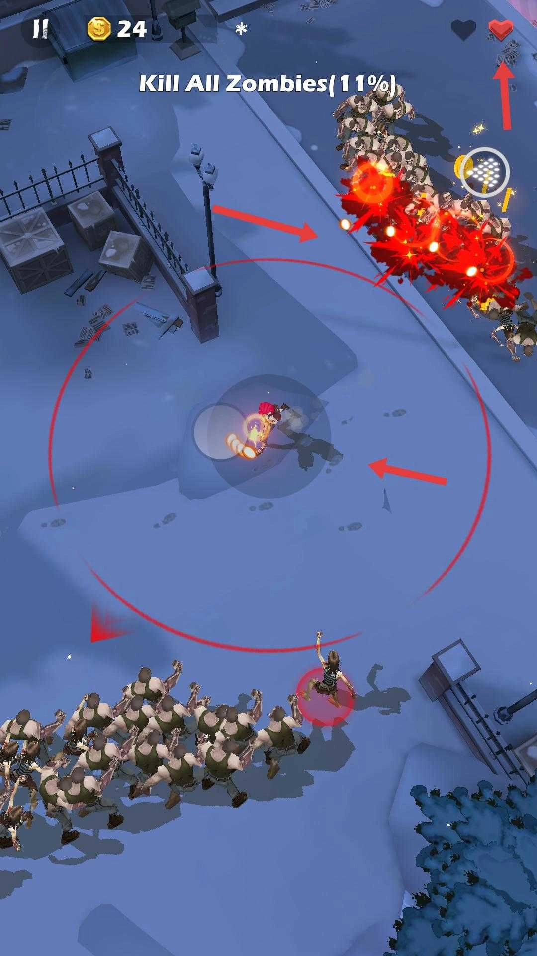 游戏启动后,会进入一个充斥着大量僵尸的场景,玩家需要操控角色,利用武器射击僵尸,与此同时还要留意躲避僵尸的攻击。
