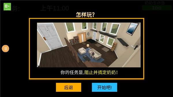 在熟练掌握基本操作后,点击进入游戏,开启与奶奶之间紧张刺激的周旋对抗。