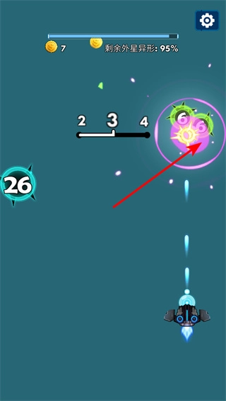 攻击外星异形时,把目标锁定在带有数字标记(比如标有数字6)的那些身上,通过打击来减少它们的剩余数量占比,以此完成战斗任务并领取对应的奖励。