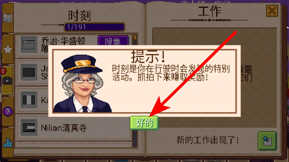 行驶过程中会弹出提示窗口,显示时刻等特殊活动信息,点击“好的”关闭提示后,若遇到时刻事件,及时抓拍就能获得奖励,从而拓宽游戏收益渠道。