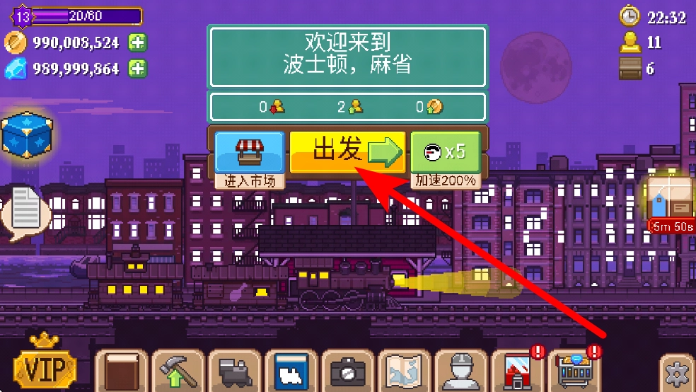 在站点界面,点击出发按钮能让列车驶向目标站点;出发前可以查看此次运输的乘客与货物状况,依据需求调整车厢配置,以确保运输效益。