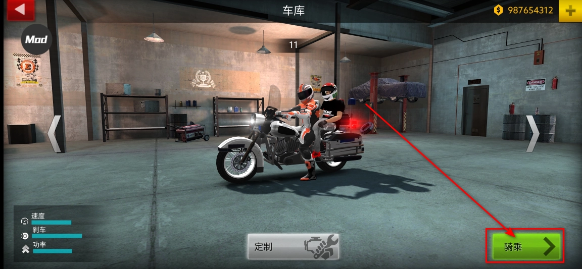 接下来点击定制选项,摩托车的选择很关键,小编截图里的这辆只能容纳一人,显然没办法载人,得换一辆车。