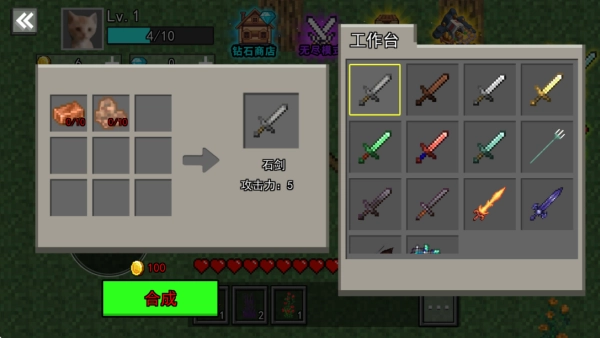 打开工作台,你可以在此进行武器锻造,收集所需材料来升级你的武器吧!