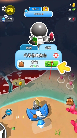 升级角色和背包,提升资源携带和挖掘效率。