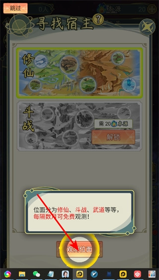 点击“观测位面”按钮,就能探索修仙、斗战等各类不同的位面。系统设定每隔数天可进行一次免费观测,通过观测能获取新的宿主与资源,从而助力推进整体进程。