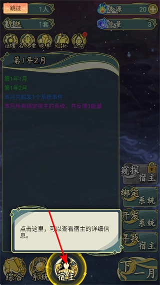 点击宿主按钮,能够查看宿主的详细信息,知晓宿主的属性与发展状况,从而为后续发展策略的制定提供依据。