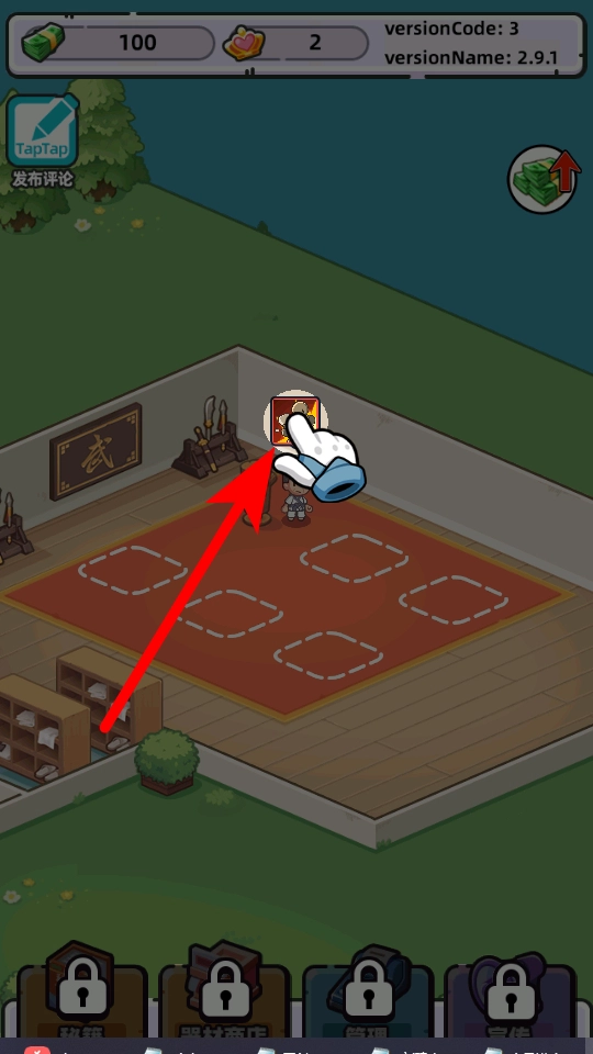 点击选定的木桩,将其拖拽至练功房里的指定位置,以此完成木桩的摆放操作。