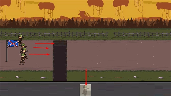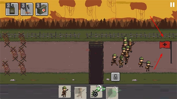 像素风战场场景:以经典像素风格构建战场画面,战壕、堡垒乃至士兵形象都洋溢着复古质感,既能减轻设备运行压力,又借助细节设计重现一战战场氛围,带来别具一格的视觉感受。