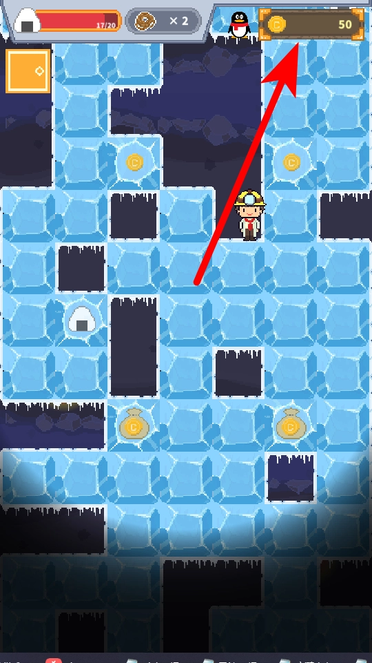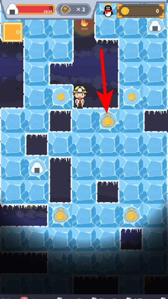 你需要操控角色在冰雪风格的地图里移动,注意那些带有金币标识的区域,朝着这些区域行进,去探索可以收集的物品。