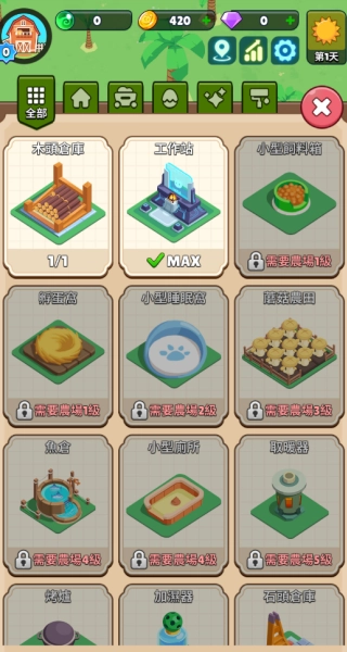 点击建造按钮后,就能挑选想要建设的农场设施,进而开展规划与建造工作。