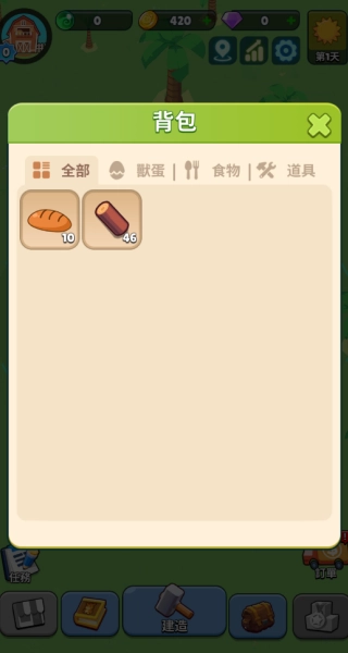 点击背包能够查看目前持有的道具和资源,挑选需要的物品来使用。