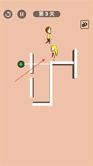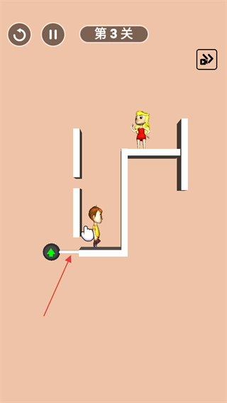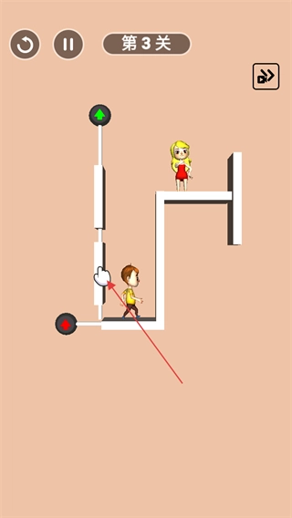 第3关,拖动红色圆点,调整男孩的初始移动路径,为后续移动做好准备。