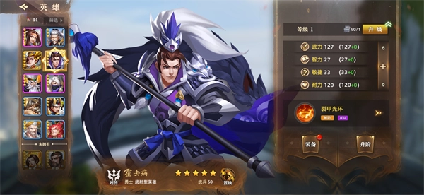 作为前排英雄,核心能力在于扛伤害——扛得住才能把队伍损失降到最低。而耐力属性加成的英雄在这方面有着先天优势,推荐优先培养这类角色。像前期免费获取的冒顿和霍去病,完全可以作为长期主力一直用到后期。