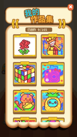 遇到关卡卡住时,可以借助交换、刷新这类辅助道具来调整方块的组合方式,优化填充的策略,最终把图案完整填满色彩,完成通关的目标,我的作品集里也因此新增了一件作品。