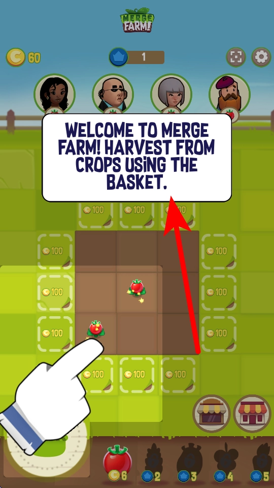 在合并农场收获作物时,需要借助篮子,依据指引操作篮子来采收成熟的作物。