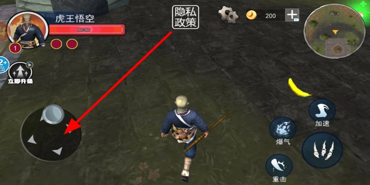首先通过操作按钮控制角色在场景里移动,调整角色的位置和行动方向,探索西游冒险场景,为后续拾取物品和战斗做好准备。