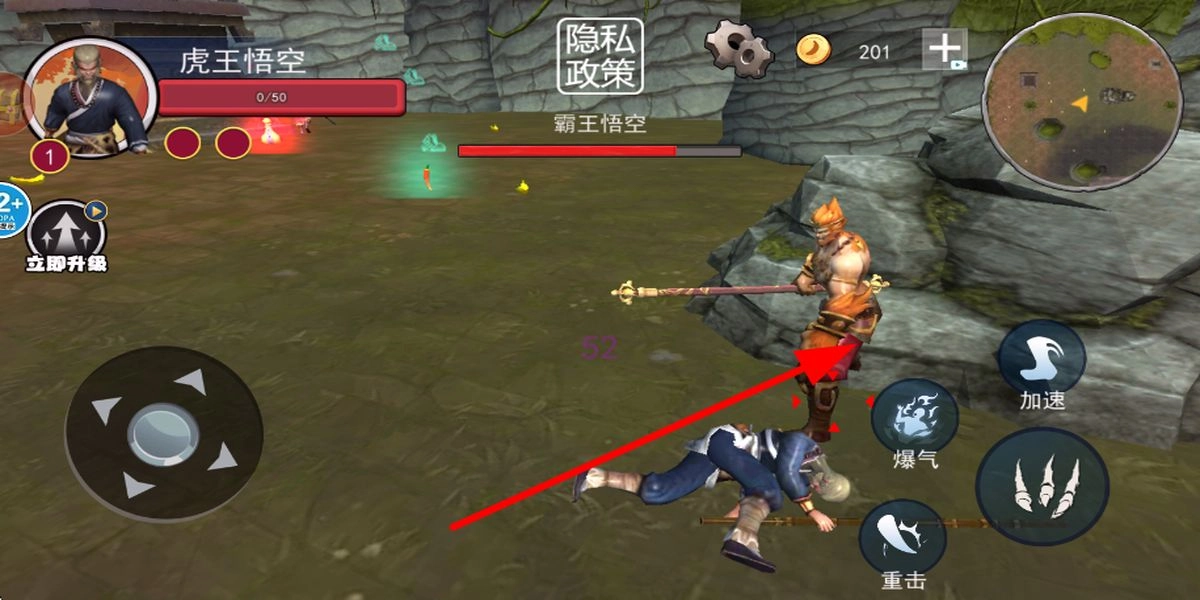 玩家在遇到敌人时,点击攻击按钮,使用角色的攻击技能对敌人发起攻击,力求击败敌人,以推进西游冒险的进程。