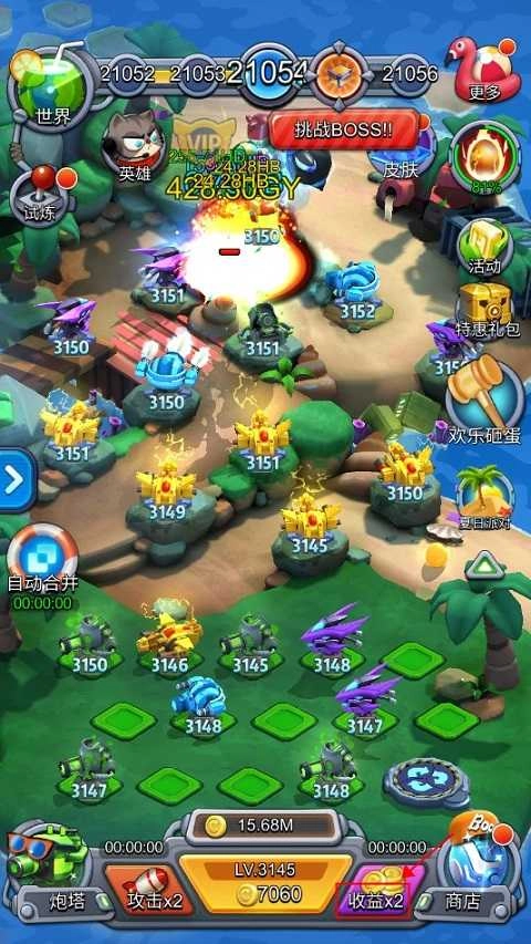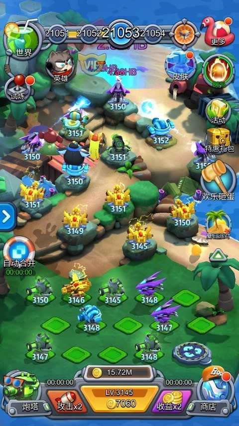 无需繁琐的手动操作,你只需通过简单的合成升级炮塔,就能体验到酣畅刺激的塔防战斗。