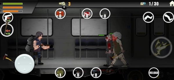 战斗时先以主武器攻击僵尸,当僵尸逼近时,可切换近战武器进行补刀。成功消灭僵尸能得到现金奖励,积累这些现金可用于后续解锁或升级武器。
