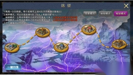 游戏内设有扫荡玩法,玩家可查看当日可挑战的副本,并通过扫荡功能一键完成挑战。
