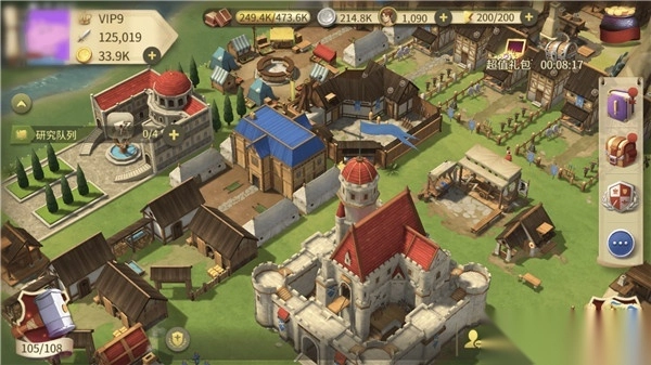 游戏开局时先进行建造房屋和跟随新手指引的操作,这两项没有特定的先后顺序。游戏内各类资源的比例相对固定,大致为8:4:2:1,但在游戏前期,对应每种资源的建筑按照1:1:1:1的比例建造即可,到了后期再根据实际情况考虑侧重发展某类资源。