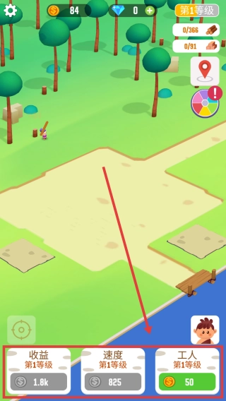 花费一定数量的货币,能够实现【收益】升级、【速度】提升以及【工人】数量增加。