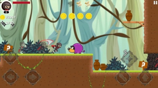 玩家借助虚拟按键操控忍者完成移动、跳跃、攻击及技能释放等动作,通过组合不同操作可施展出华丽的连击招式。