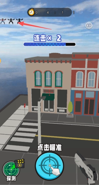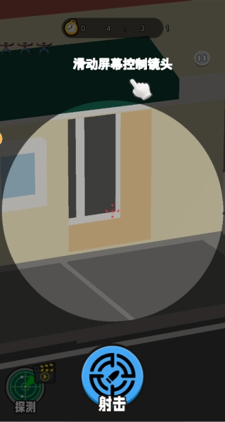 进入关卡后,通过滑动屏幕来操控镜头,切换不同视角以搜寻狙击目标。