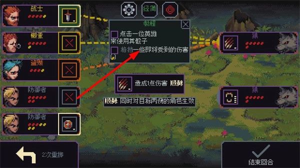 点击战士角色,即可选中该角色执行相关操作,例如利用其骰子来格挡伤害,这是保护角色的关键步骤。