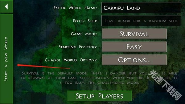 创建世界后点击开始;