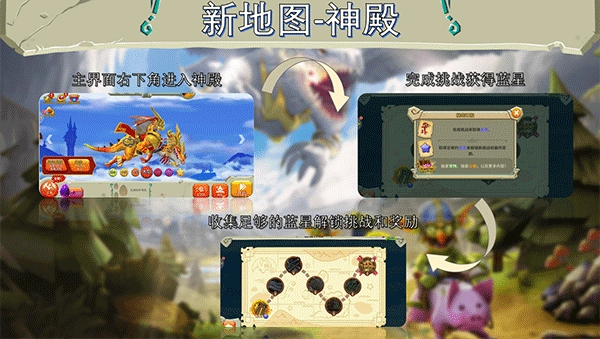 在神殿挑战里,龙的生命值不会减少,而且食物仅会在特定的挑战关卡中出现。