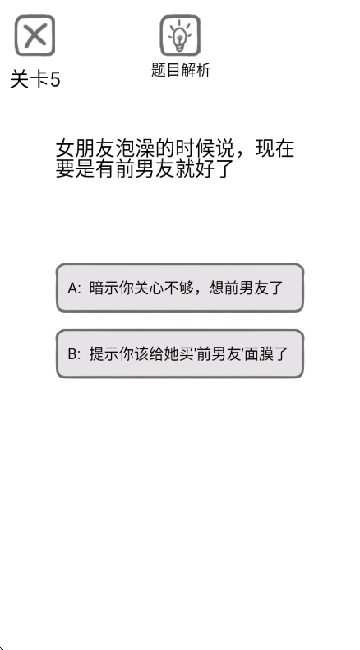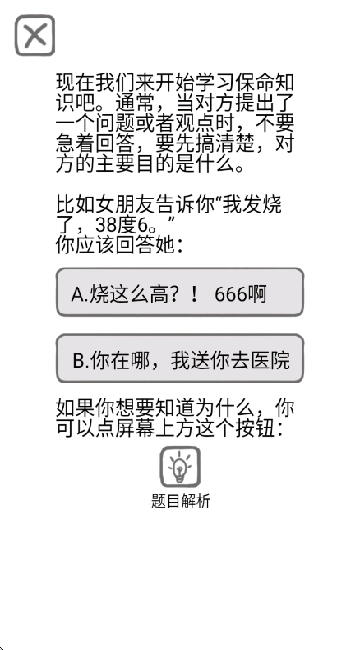 这款游戏主要通过文字来讲述内容,每道题目都会给出两个选项,玩家需要结合具体场景来挑选出“正确答案”。