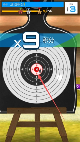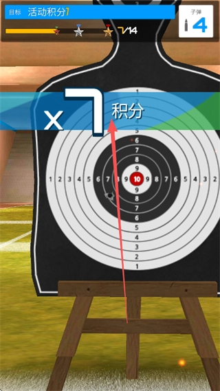命中靶心可获得积分,积分越高越好。